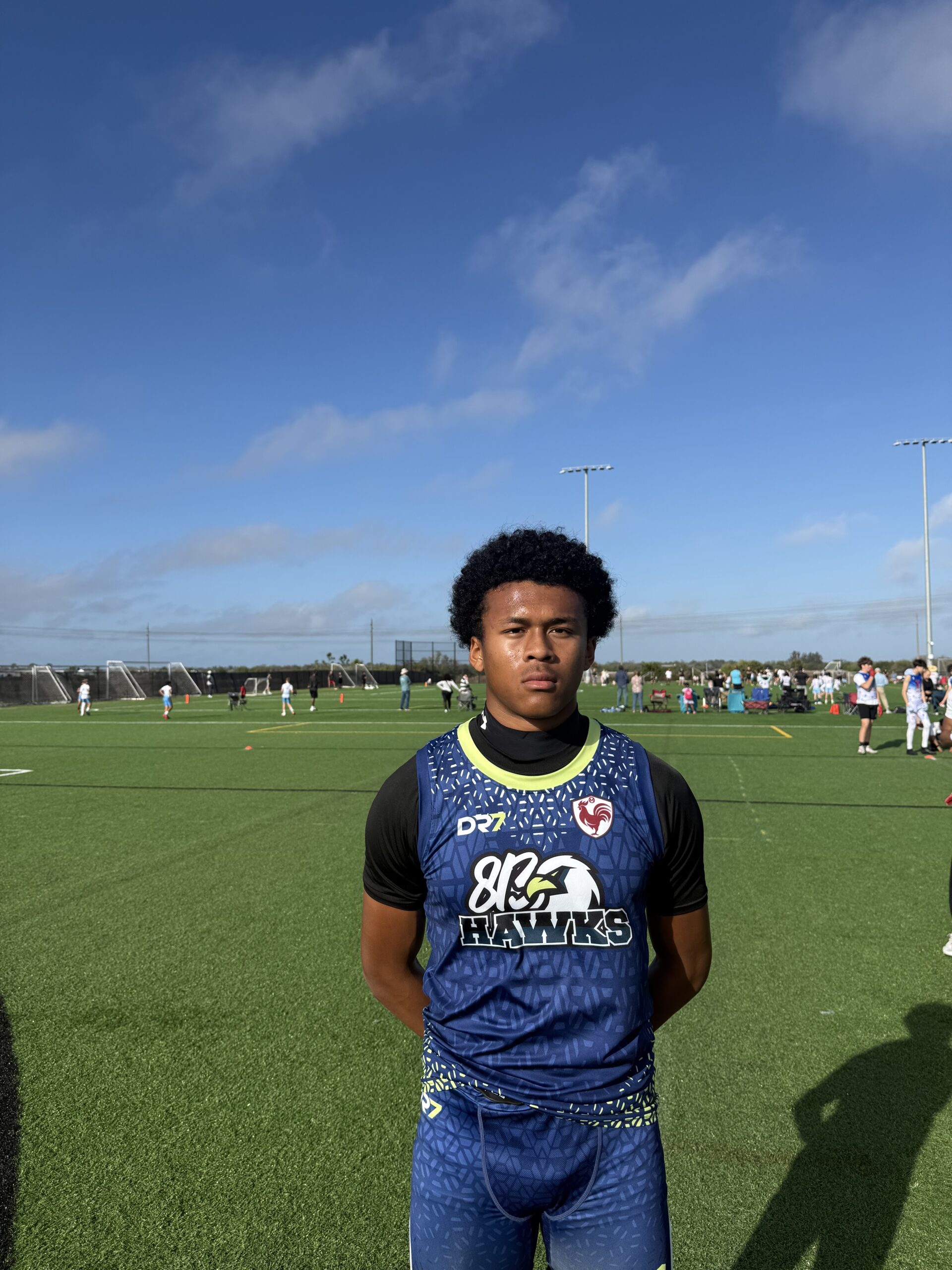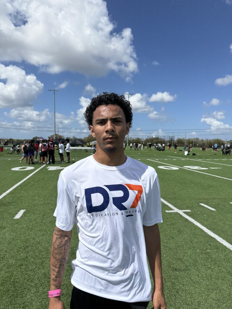 Jayden stood out on Saturday as being a reliable target who displays strong hands in traffic. Made terrific catches all Saturday. Has strong hands and a wide catch radius. Displays spatial awareness. He is a versatile WR who can line up in the slot or outside. Consistently won at the catch point. I love his mentality and how competitive he is. Look for a big offseason, spring, summer workouts going into his fall season.